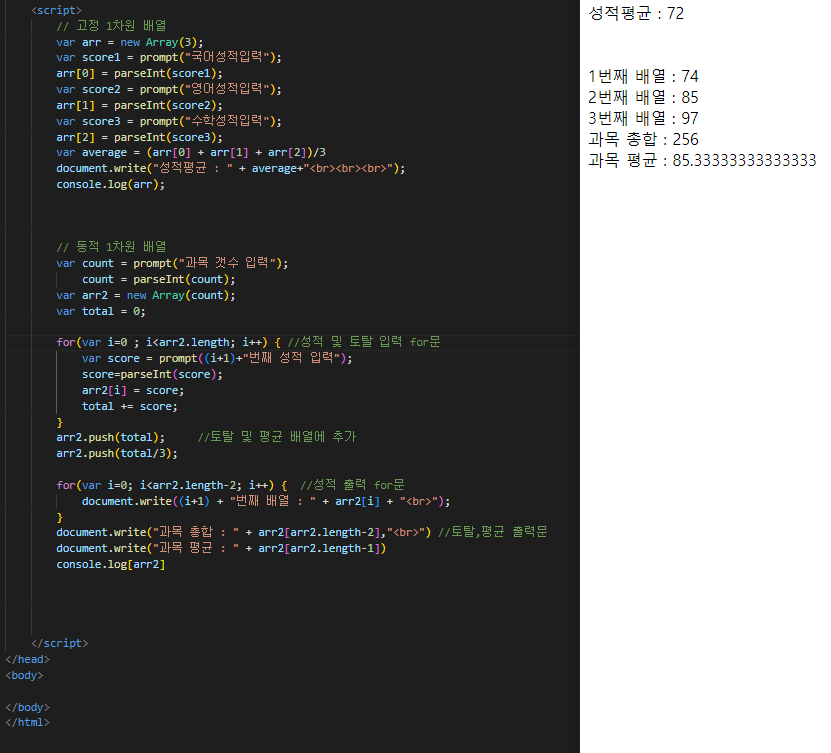 2. 동적 1차원 배열문제 ( 과목갯수입력 , 성적,합계,평균을 배열에입력 및 출력)