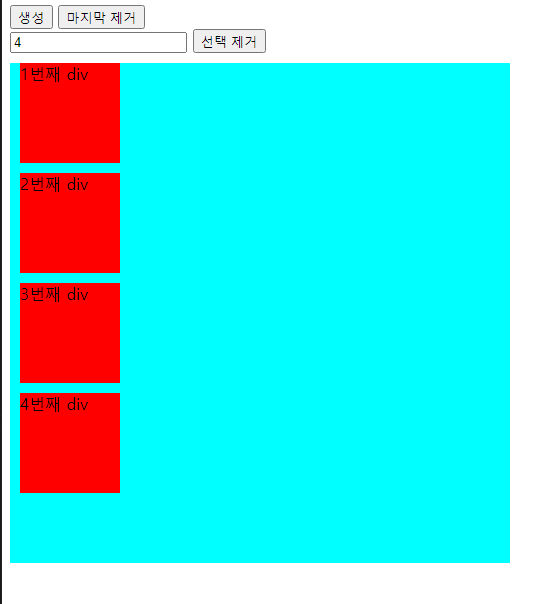 ex) 2번쨰 div를 선택제거 했다면 1번째 3번쨰 4번째 박스가 남을텐데