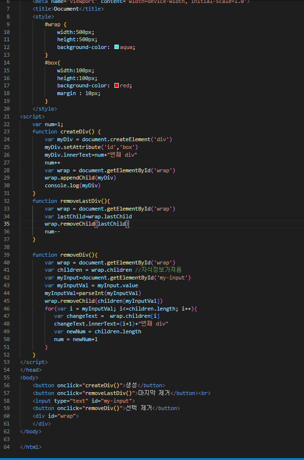 2-3 wrap.removeChild(lastChild)로 부여해둔 마지막 자식(div) 제거