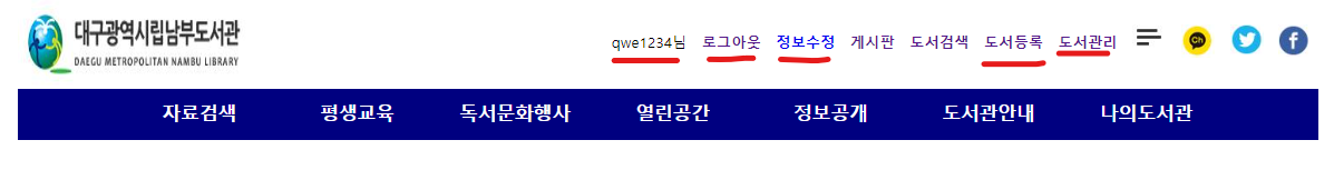 도서를 관리할 메뉴도 표시되게 해주었다.