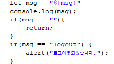 - RedirectAttributes에 logout 메시지를 담아보내 알림창이 뜨게한다.