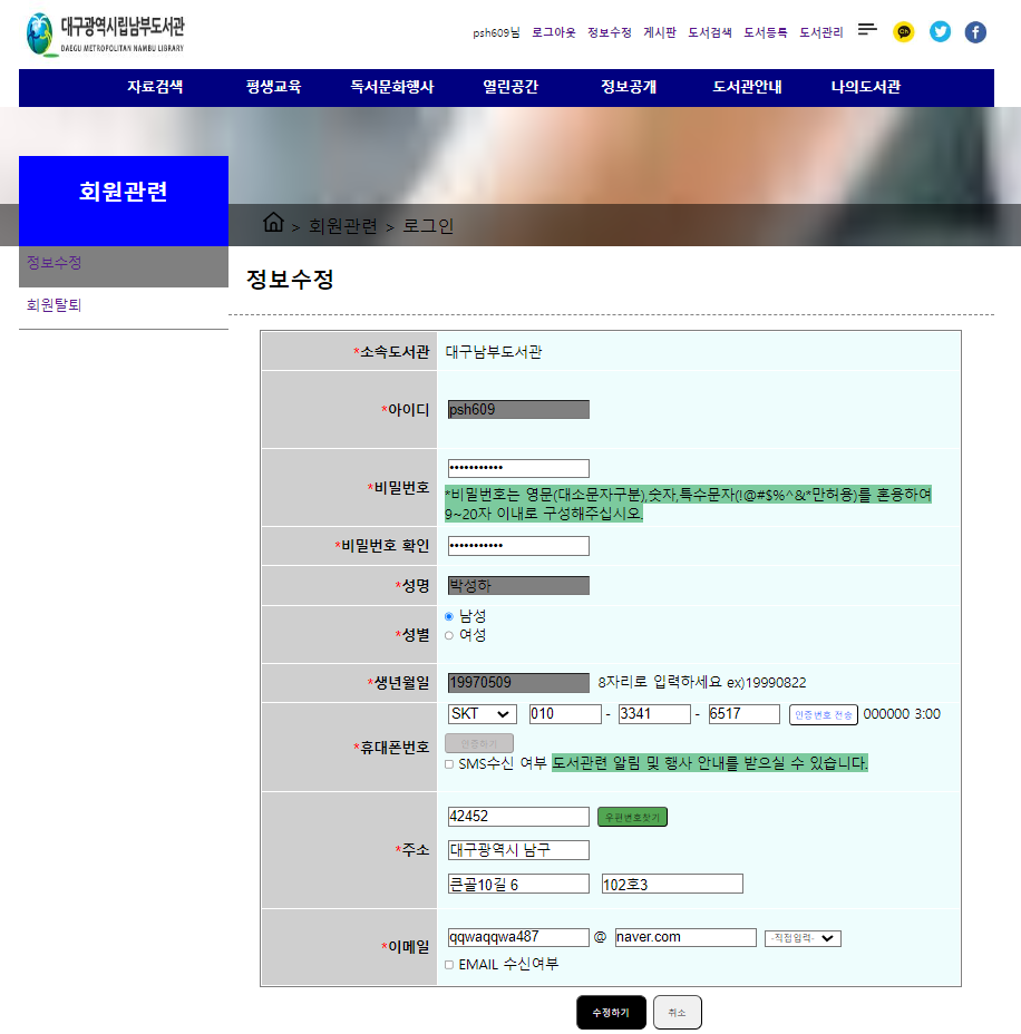 1. 정보수정화면