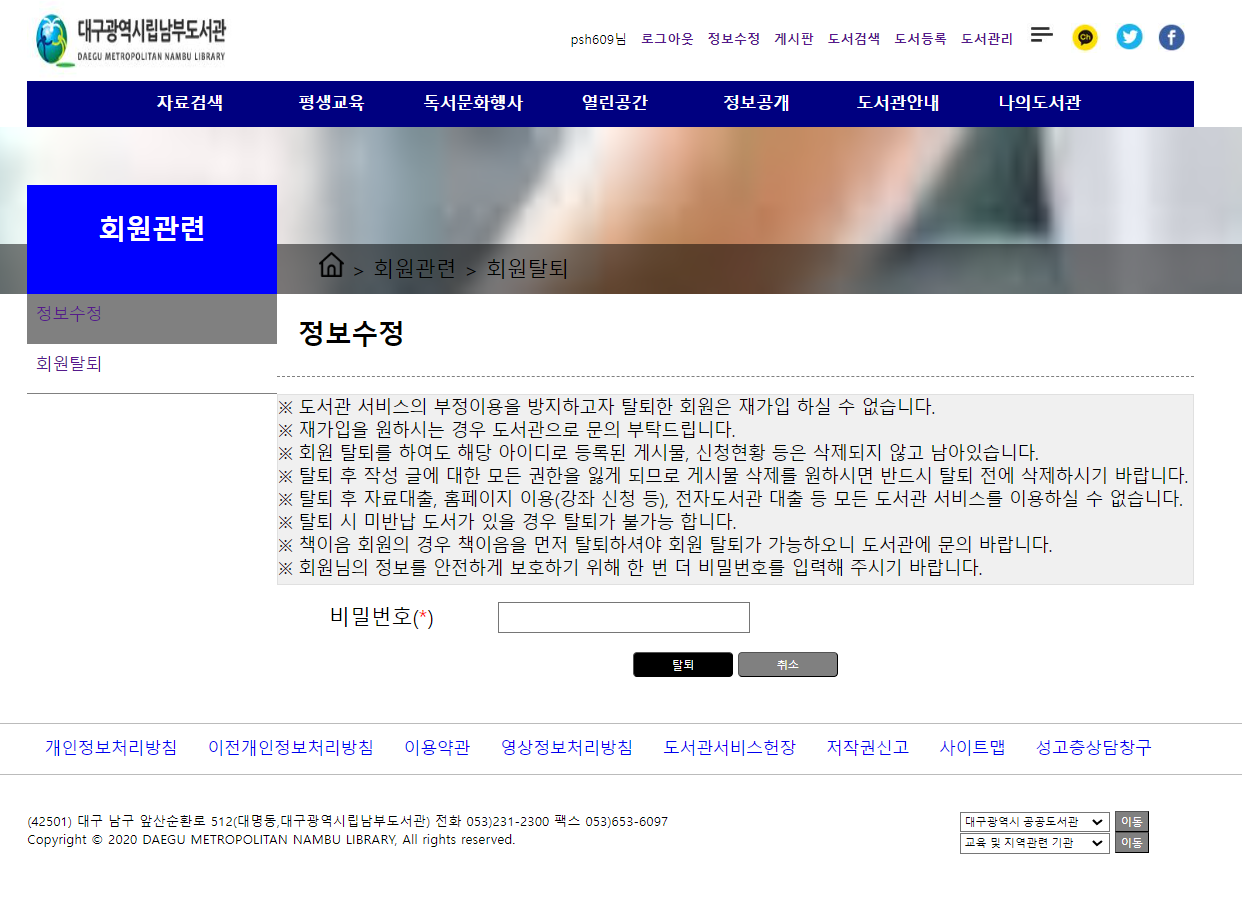 1. 회원탈퇴 페이지