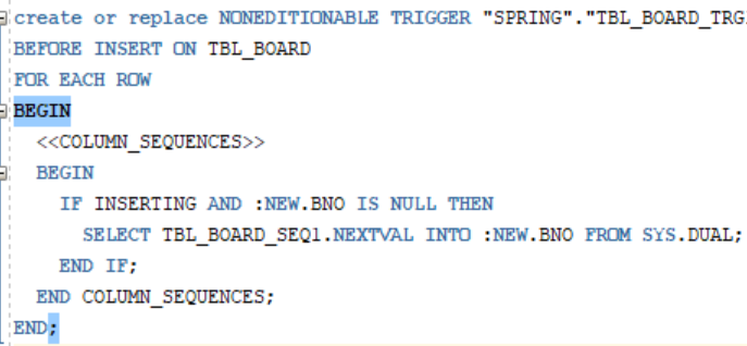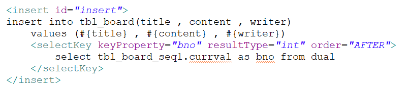 자동생성되는 시퀀스값을 bno로 저장합니다