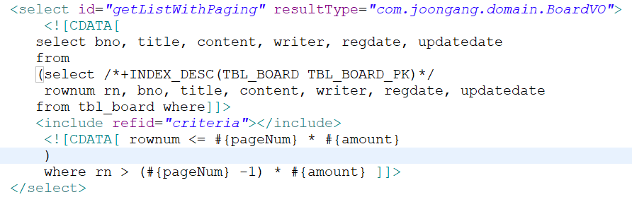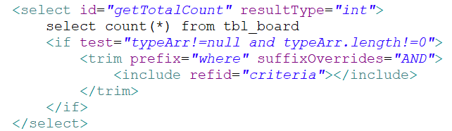 - refid="criteria"는 추후 게시글 내 검색 기능에서 설명예정