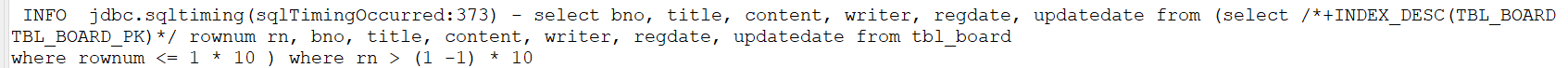 - 쿼리성능 최적화를위해 hint 사용(/* */) , 신규 게시물이 상단으로 표시되게 끔 역순으로 조회
