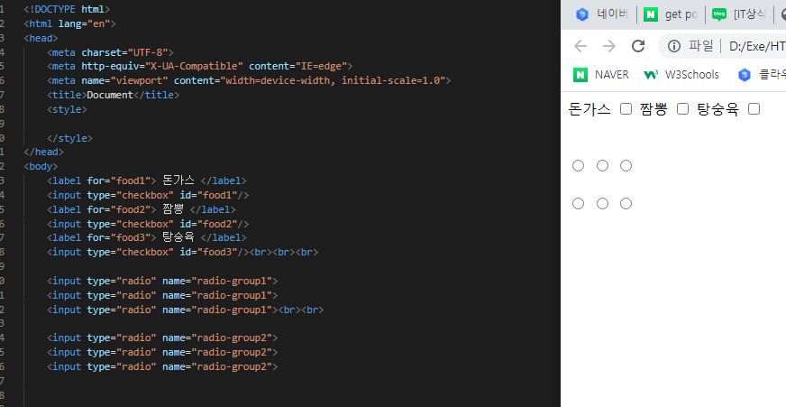<input type="radio" name="radio-group1"> // name으로 그룹을 만들면 하나만 체크되게 가능