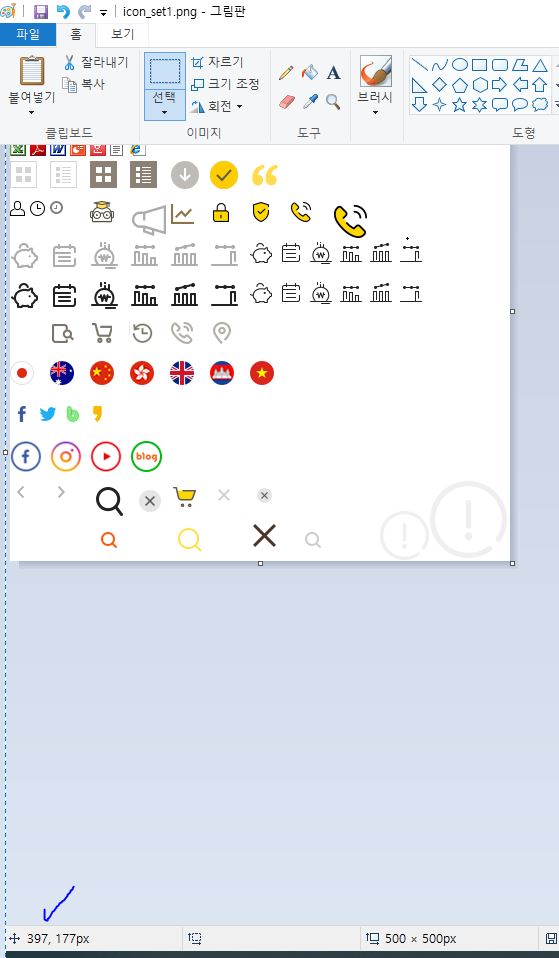 - 그림판에서 열기 후 마우스로 좌표확인 (좌측하단에 좌표 표시)