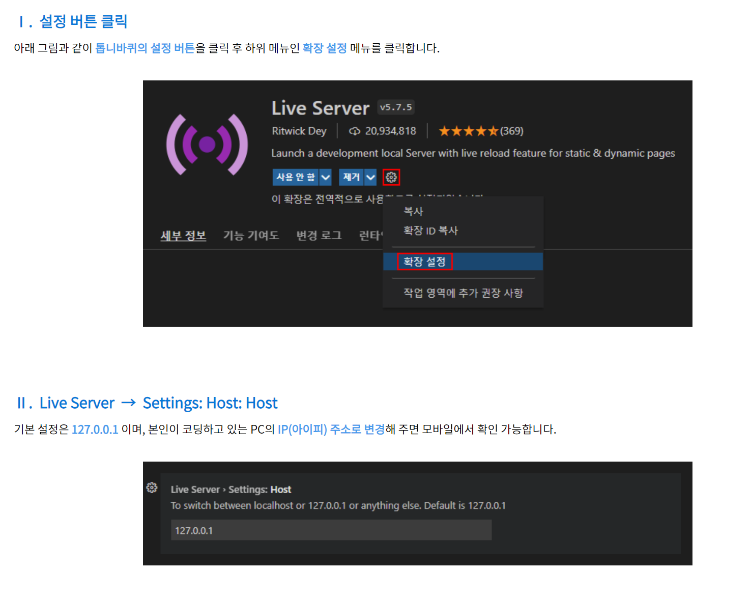 상단 설정으로 현재 접속중인 ip 입력시 go live 가능하다.